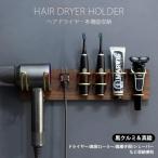 天然木製 ヘアドライヤー シェーバー 美容ローラー 電子歯ブラシ 歯磨き2個 ホルダー ブラケット バスルーム 壁掛け 黒クルミ ラック 北欧モダン