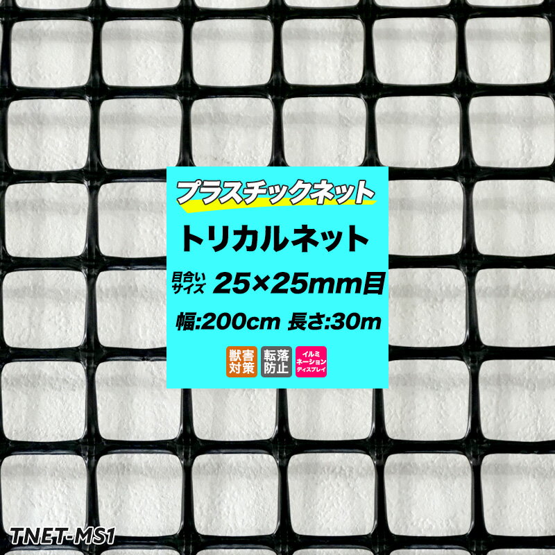 [全品10%OFFクーポン+P10倍10日20時〜6H]プラスチックネット トリカルネット MS-1 黒 目合い25×25mm/200cm×30m巻 網 園芸 ガーデンネット 落下防止 階段 吹き抜け 獣害防止 ディスプレイネット イルミネーションネット 土木 鳥よけ 網 ネット 販売 友安製作所 JQ