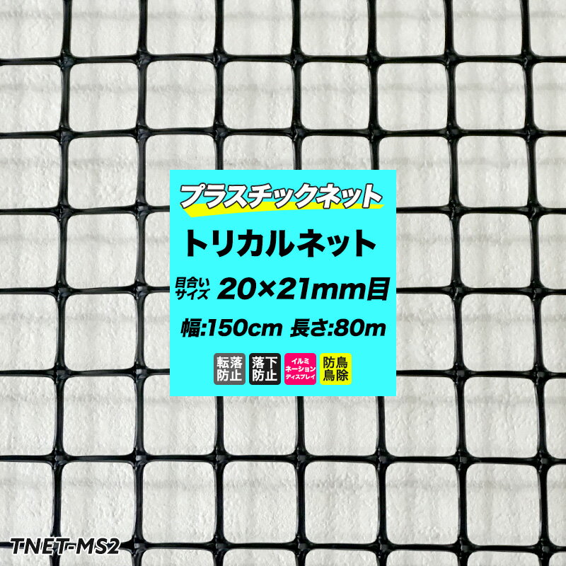 [土日限定15%OFFクーポンあり] トリカルネット MS-2 幅1.5m×80m巻(目合い 20×21mm プラスチックネット プラスチック 網 落下防止 棚 ラック 階段 柵 フェンス 安全 カバー ディスプレイ イルミネーションネット 鳥よけ ネット 網 黒 ブラック JQ