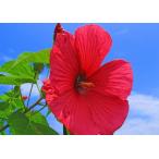 絵画風 壁紙ポスター (はがせるシール式) 赤いハイビスカスの花 青空 ブッソウゲ 仏桑華 沖縄 ハワイ 花 キャラクロ FHBC-001A2(A2版 594mm×420mm)