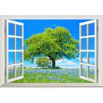 絵画風 壁紙ポスター (はがせるシール式) ムスカリの花 青空と大木と花畑 【窓仕様】 キャラクロ FLGD-005MA2(A2版 594mm×420mm)<日本製>