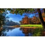 絵画風 壁紙ポスター (はがせるシール式) ユトレヒトの秋の景色 オランダ 紅葉 青空 池 キャラクロ KYO-027W2(ワイド版 603mm×376mm)<日本製>