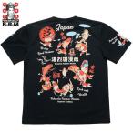 爆裂爛漫娘 (爆烈爛漫娘)/b-r-m/エフ商会 半袖Tシャツ RMT-350 抜染プリント\"金魚づくし百ものがたり/歌川国芳\" 和柄Tシャツ ブラック