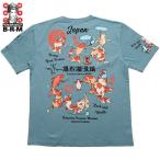 爆裂爛漫娘 (爆烈爛漫娘)/b-r-m/エフ商会 半袖Tシャツ RMT-350 抜染プリント\"金魚づくし百ものがたり/歌川国芳\" 和柄Tシャツ ブルーグリーン