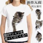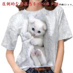 可愛い 3D 猫 Tシャツ 半袖 男女兼用 メンズ 薄手 ねこ 白 レディース 面白 おもしろ かわいい トリックアート 代引不可