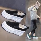 レディース 厚底 スリッポン 本革 レザー スニーカー カジュアル 6.8cm ぺたんこ フラットシューズ ローカット プラットフォーム 歩きやすい 滑り止め 通学