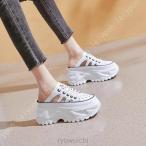かかとなし スニーカー 春夏 スリッポン 厚底 3cm 身長アップ レディース サンダル スリッパ カジュアルシューズ おしゃれ メッシュ レースアップスニーカー