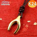 純金 メンズ ネックレス 革紐 24金 トップ 金 ゴールド 24K ウィッシュボーン ペンダントトップ k24 wishbone 送料無料 人気 セール sale