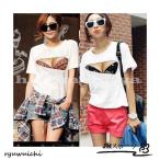 Tシャツレディースおしゃれ半袖半袖Tシャツカジュアルクールネック韓流グッズペアルックおっぱいTシャツ巨乳TシャツネタよみせBF