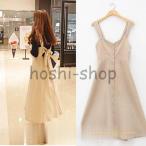 レディース サロペット ワンピース ジャンパースカート 可愛い バックリボン サロペット ワンピース ベージュ S M L