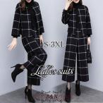 爆買 セットアップ 秋 冬 パンツスーツ レディース 40代 卒業式 服 母 ワイドパンツ おしゃれ ママ入学式 ジャケット 通勤 OL チェック柄 母親 2点セット