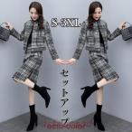 爆買 卒業式 服 母 レディース ママスカートセット セットアップ 長袖 卒園式 スーツ チェック 入学式 ジャケット 通勤 OL 母親 入学式 3点セット