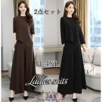 爆買 セットアップ レディース 秋 冬服 ニット ワイドパンツ パンツスーツ 40代 卒業式 服 母おしゃれ ママ長袖 卒園式 入学式 通勤 OL 母親 2点セット
