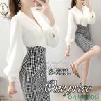 ワンピース レディース 春 秋 セットアップ風 Vネック おしゃれ 膝丈 卒業式 オフィス OL 二次会 入学式 超人気 パーティー 発表会 音楽会 キレイめ