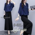 春コーデ セットアップ レディース 春 夏 パンツスーツ ワイドパンツ 2点セット 入学式 七分袖 服 母 シフォン おしゃれ ママ オフィス 通勤 OL 50代