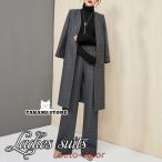 セットアップ レディース 秋 パンツスーツ 春 結婚式スーツ アウター フォーマル Vネック 卒業式 おしゃれ 体型カバー 着痩せ 3点セット 長袖 入学式 通勤 OL