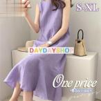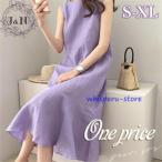 ワンピース 夏 ロング丈 綿麻 リネン ノースリーブ マーメイド マキシ おしゃれ 着痩せ 韓国風 レディース ゆったり パープル 30代 40代 50代 50代 キレイめ