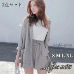 セットアップ レディース 春 夏 パンツスーツ ワイド ショートパンツ 3点セットジャケット ブレザー 麻 リネン スーツ おしゃれ オフィス 通勤 OL 50代