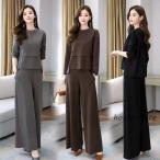 セットアップ レディース 秋 服 ニット ワイドパンツ パンツスーツ 40代 卒業式 服 母おしゃれ ママ 長袖 卒園式 入学式 通勤 OL 母親 2点セット