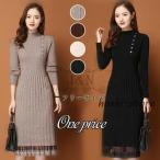 ワンピース レディース 春 ニットワンピース レース ロング 無地 秋冬 おしゃれ ロングワンピース 長袖 ニットワンピース OL