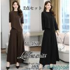 セットアップ レディース 夏 パンツスーツ 40代 ワイドパンツ カジュアル シフォン 2点セット 七分袖 服 母 おしゃれ 通勤 旅行 OL 20代 30代 50代