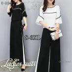 セットアップ レディース パンツ 30代 春 夏 40代 2枚組 上下セット トップス 卒園式 入学式 入園式 カットソー 着痩せ サイズ 通勤 結婚式 お出かけ