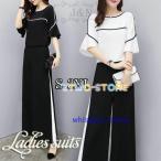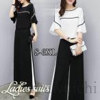 セットアップ レディース 春 夏 パンツスーツ ワイドパンツ 春コーデ 2点セット 入学式 五分袖 服 母 おしゃれ ママ オフィス 通勤 OL 40代