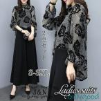 セットアップ レディース 夏パンツスーツ おしゃれ ブラウス バギーパンツ 花柄 vネック ワイドパンツ ウエストゴム 大きいサイズ 通勤 OL 50代
