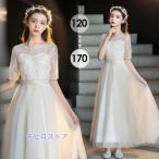 ドレス 子供 女の子 発表会ドレス 五分袖 子ども ワンピース レース シャンパン お祝い日 演奏会 音楽会 フォーマル 誕生日 撮影 パーティー 卒業式 入学式