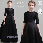 ピアノ発表会 ドレス 子供 女の子 発表会 ドレス 子ども レース ワンピース ブラック 黒 五分袖 ブラックドレス お祝い日 演奏会 音楽会