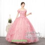 カラードレス ピンク オフショルダー フェザー 前撮り 二次会 ウェディングドレス ウエディングドレスドレス 演奏会 結婚式 音楽会 発表会 パーティードレス