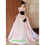 カラードレス 二次会 ドレス ピンク ベアトップ リボン 編み上げ ウェディングドレス ウエディングドレスドレス 演奏会 結婚式 音楽会 発表会 パーティードレス