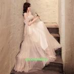 カラードレス ベージュ チュール リボン キャミソール 二次会 ウェディングドレスドレス 挙式 演奏会 結婚式 音楽会 発表会 大人 トレンド パーティードレス