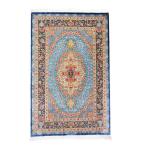 ペルシャ絨毯/クム 203×137cm イラン産 手織り シルク100% ラグ ラグマット(FN-70306)