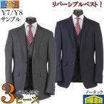 スーツ3ピース ノータック スリム ビジネススーツ メンズ Y7 Y8 リバーシブルベスト パンツアジャスター付き 全2柄 18000 SS2001