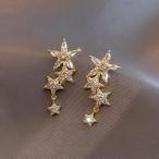 顔やせ〜八芒星フリンジピアスゴールドロングピアスフェミニンシンプル耳飾り