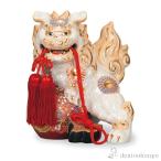 小槌獅子 白盛 6号 ( 木札名入れ有料 置物 玄関 受付 風水 幸運 九谷焼 結婚 出産 内祝い 引き出物 金婚式 誕生日プレゼント 還暦祝い 古希 喜寿 米寿 )