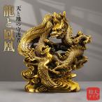 風水 特大 龍と鳳凰 置物 ゴールド ドラゴン フェニックス 不死鳥 竜 玄関 風水グッズ 開運祈願 金運祈願 風水龍 アイテム 龍神 開運 金運 財産運 出世運 恋愛運