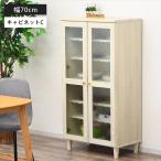 キャビネット 食器棚 幅70cm ガラス扉 キッチン 白 ホワイト 木目調 おしゃれ 北欧 コンパクト シンプル レトロ かわいい
