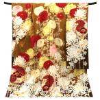 15%クーポンあり 振袖 九重×中村里砂ブランド 仕立て付き 薄茶色 新品 販売 購入 古典柄 菊 万寿菊 饅頭菊 ダリア 組紐 正絹 フォーマル 着物 成人式 絹 f-779