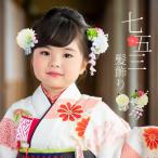 七五三 髪飾り 三歳「つまみ細工 お花の髪飾り 白 933」お花のパッチン留めミニ髪飾り2点セット 日本製 ヘアアクセサリー お子様用髪飾り 七五三(メール便不可)