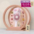 羽子板 お祝い 初正月 久月 9号 つまみ細工 髪飾り付き 羽子板 桃 パールピンク塗り 鞠三連つるし付き 円形 丸型アクリルケース ミニ コンパクト