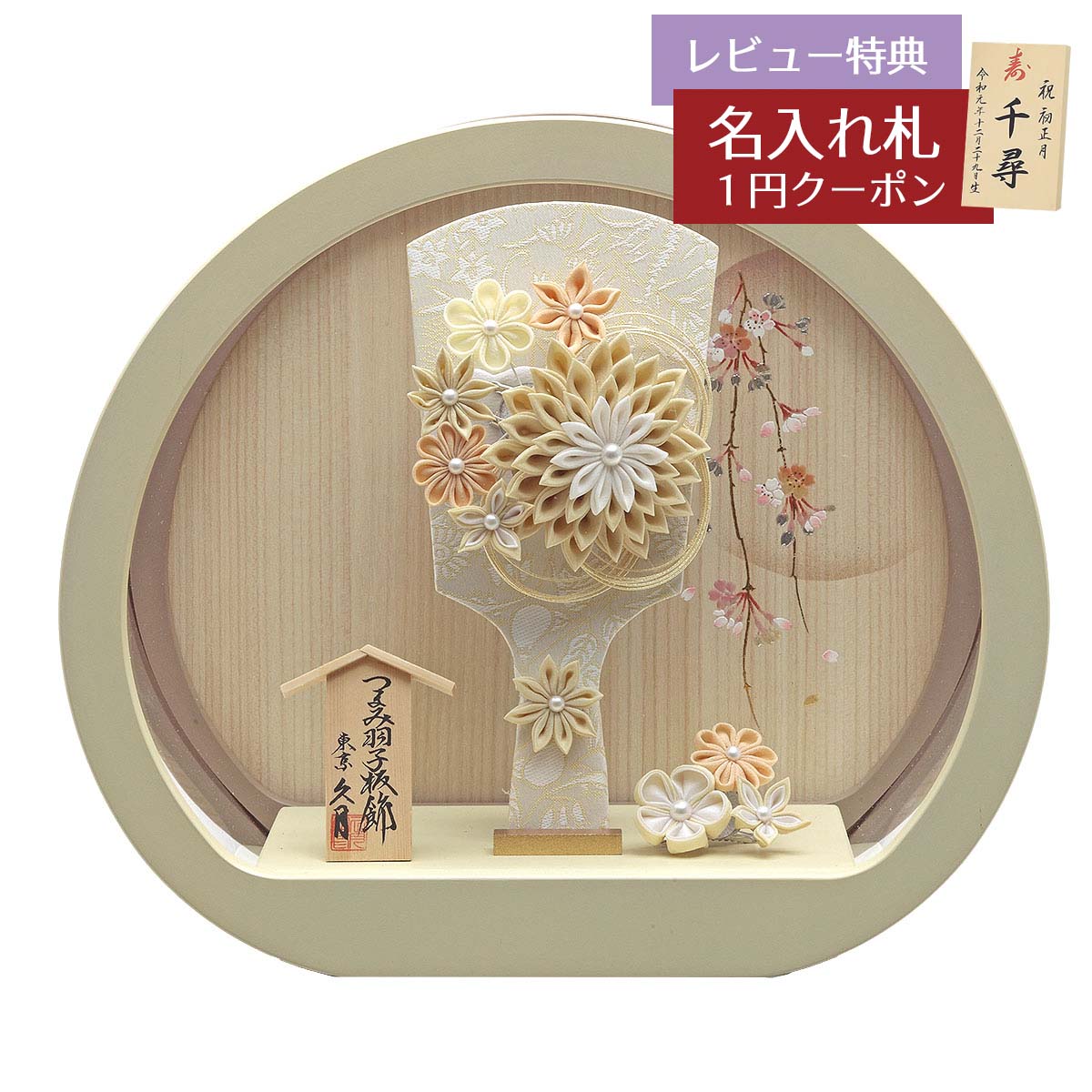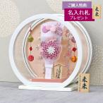 羽子板 お祝い 初正月 久月 9号 つまみ細工 髪飾り付き 羽子板 桃 白塗り 鞠二連つるし付き 円形 丸型アクリルケース ミニ コンパクト