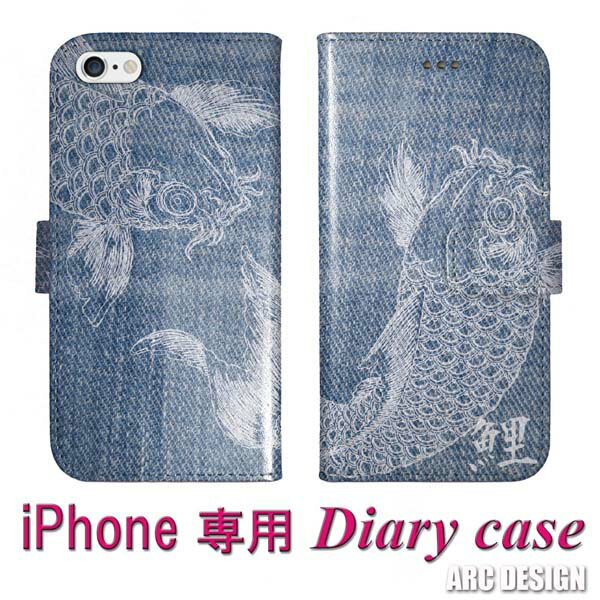 【期間限定 10%OFFクーポン】 iPhone16 ケース 手帳型 全機種対応 スマホケース iPhone17 16e 16 Pro Max 15 14 Plus 13 Mini iPhoneSE 第3世代 手帳 ダイアリー 和柄 コイ 鯉 デニム ブルー