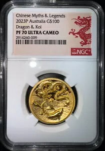 2023 オーストラリア 1オンス ゴールド 中国神話&伝説 ドラゴン&鯉 ハイレリーフ NGC PF70