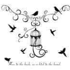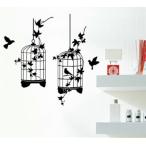 ウォールステッカー 鳥 木 転写 木と鳥かご 動物 ステッカー 植物 鳥籠 キッチン 壁紙 北欧 木 花 トイレ おしゃれ 玄関 かわいい モノトーン アジアン vr0382