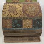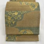 袋帯 名品 関西仕立て 華文 鳥 箔 鶯色 六通 正絹 中古