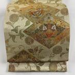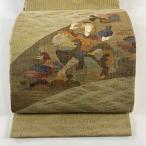 美品 袋帯 名品 人物 鳥 金糸 薄茶色 お太鼓柄 正絹 中古
