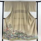 付下げ 身丈160cm 裄丈66cm M 袷 向かい鳥 華文 刺繍 ベージュ 正絹 秀品 中古