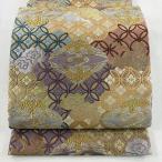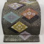 美品 袋帯 名品 向鳥 菱 箔 灰緑 六通 正絹 中古